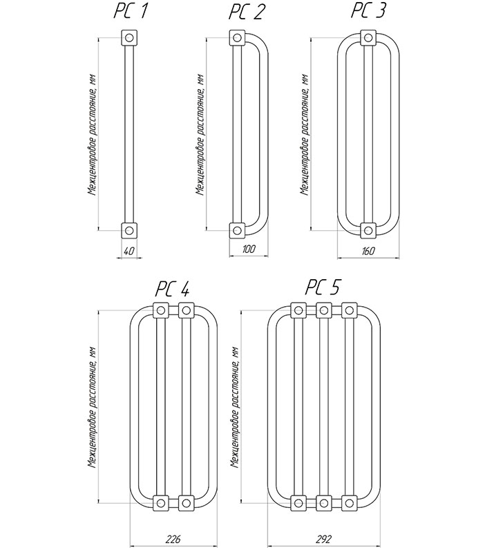 Межцентровое, мм